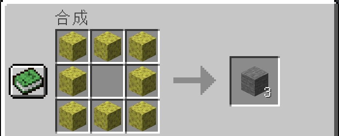 例子:用1个石头和1个带萤石粉标签的物品合成4个圆石